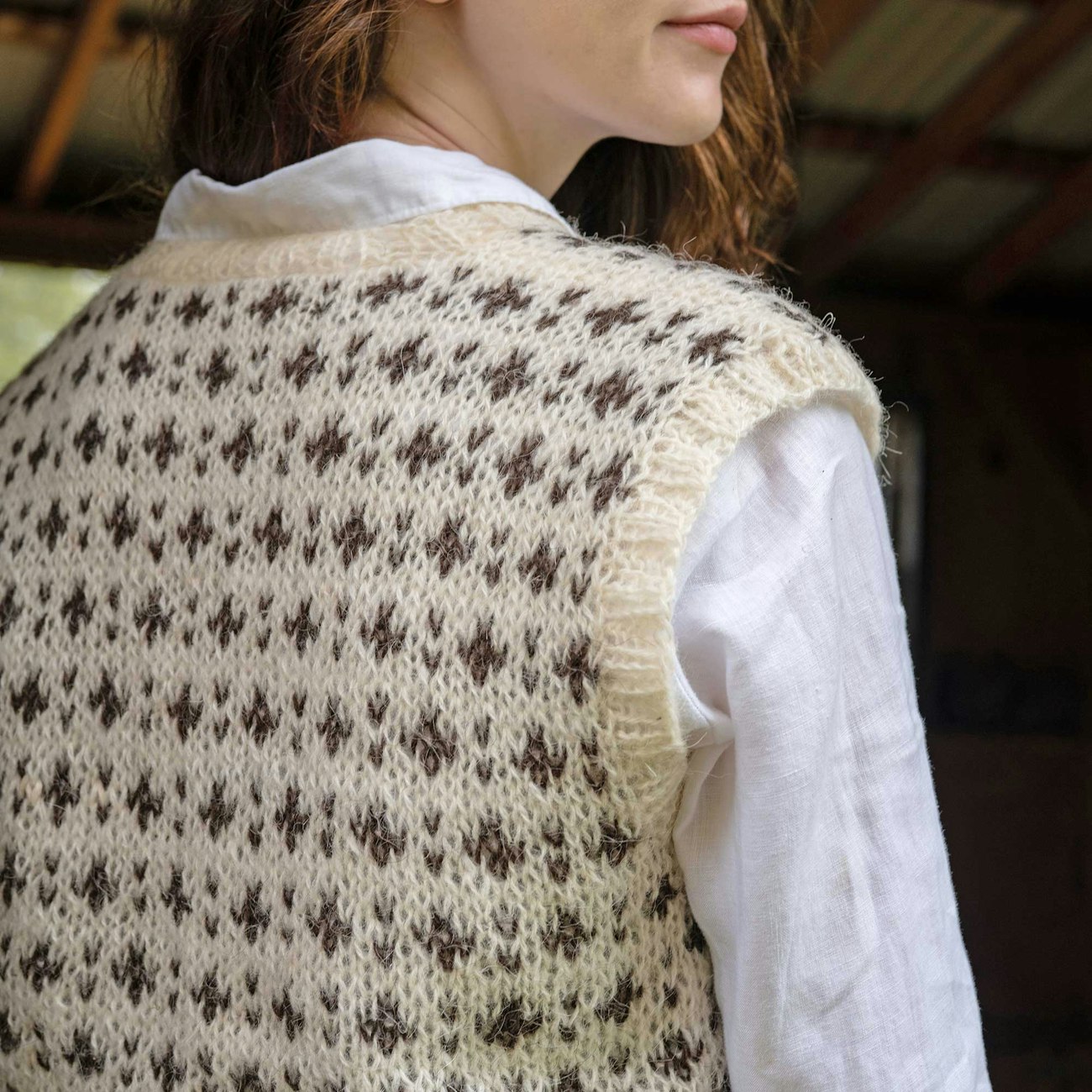 An airy halo is the key to the Pole Vest’s lightweight warmth. Get the pattern and take a closer look at this special yarn from the Faroe Islands. <a href="https://farmfiberknits.com/faroese-wool-what-is-it-like-to-knit/">Continue reading.</a>