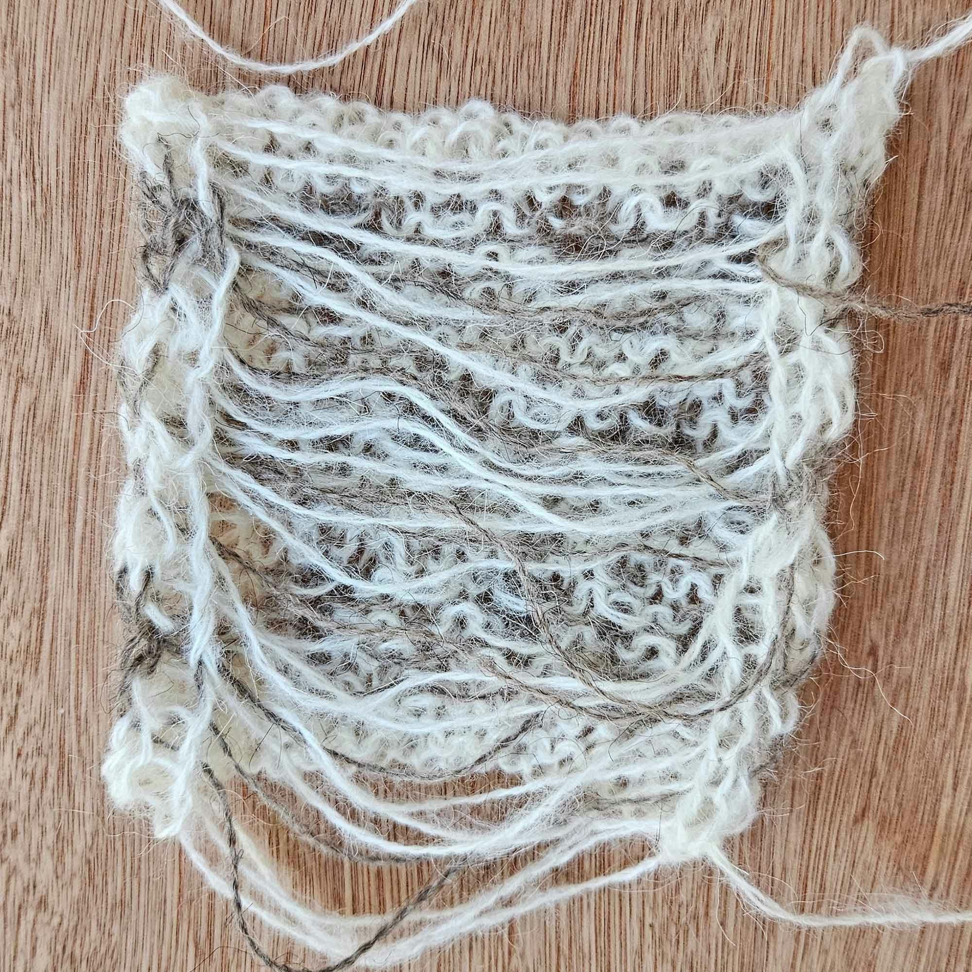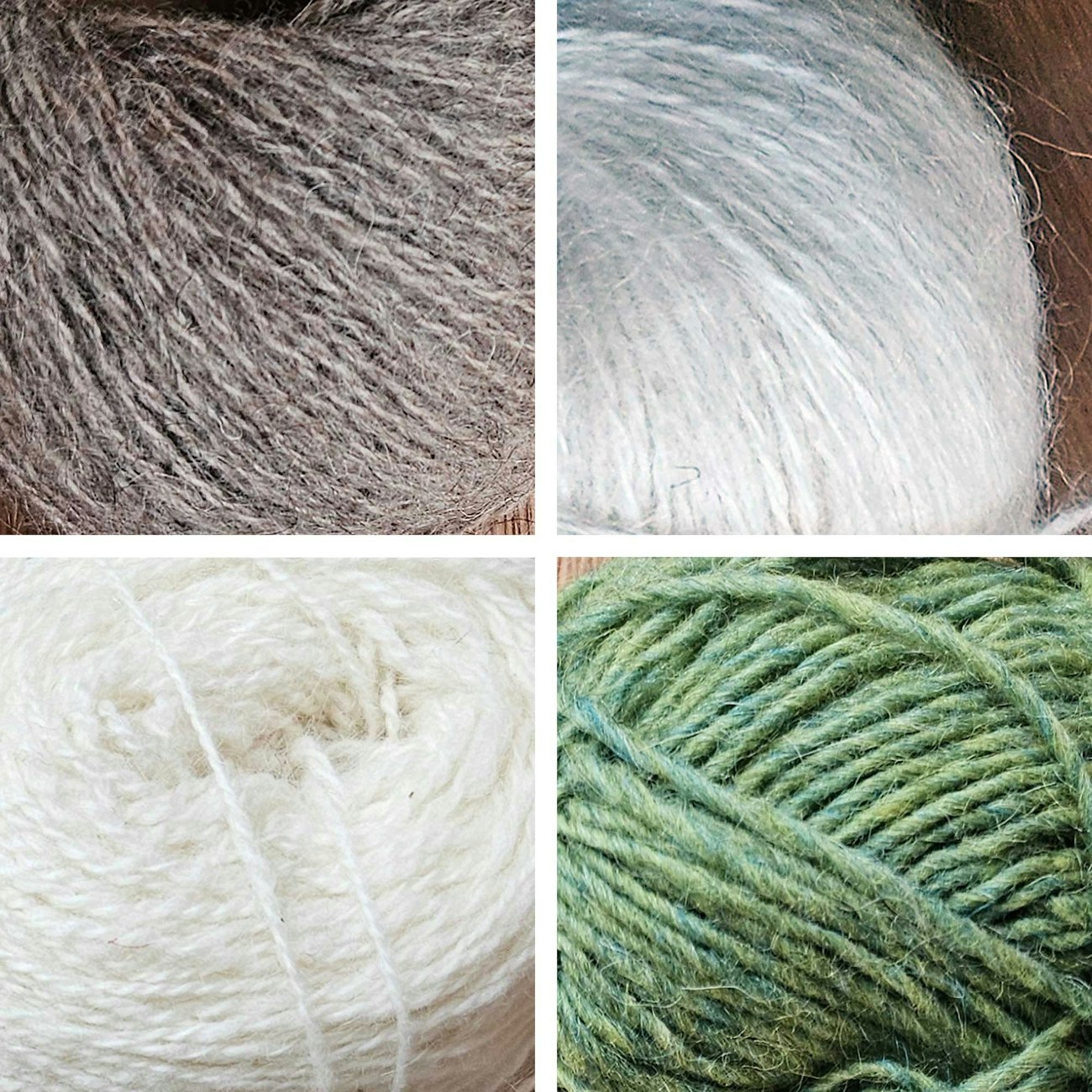 Top row, Brushed Tradition; bottom row, handspun Icelandic wool and Léttlopi.