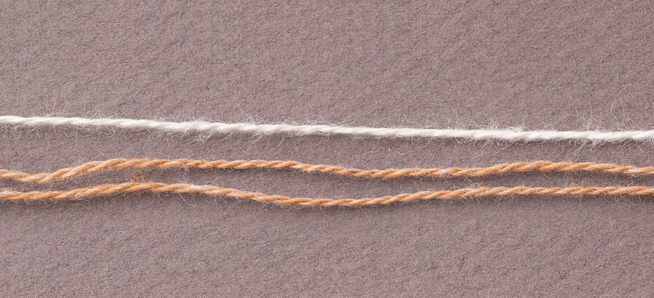 Foxfibre 10/2 cotton (held triple). Kate finds that three strands is roughly sportweight. Photo by Matt Graves