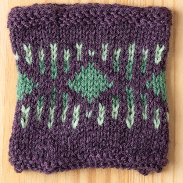 At my chosen size, I need 1,260 yards of the main color and 252 of each contrasting color. If I use Targhee Tango, I’d need five skeins of the main color and one skein each of the contrasting colors—although I might choose just one contrasting color and buy two skeins of it for a two-color design.