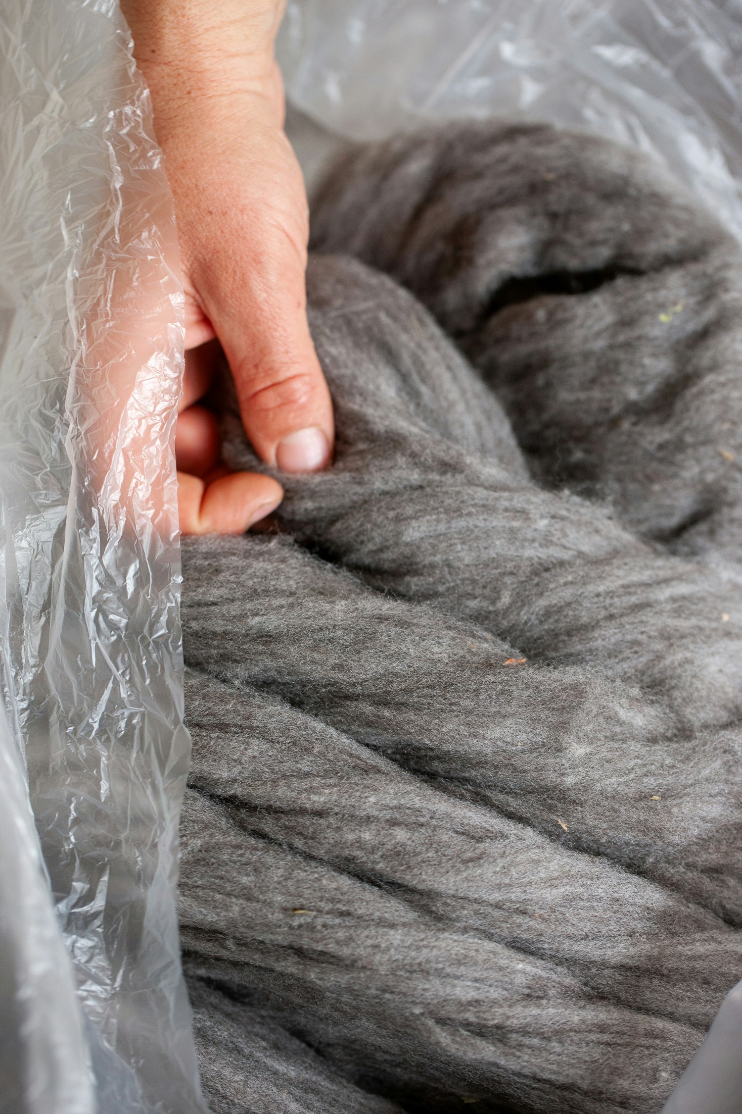 I really love this part of the business. My roving and naturally colored yarns are made from a single fleece, so you get the experience of working with that one animal. My favorite fiber is the CVM/Wensleydale cross because it is lofty and wearable with the luster of longwool. From creamy white to shades of gray, pale tans to dark browns, and longwool and finewools, we have tons of natural color and unique fiber options. Each sheep has its own texture and color tone and undertones. I really want to showcase these variations. I love that naturally colored fibers remove the need for dye, which is a significant source of pollution and water waste worldwide.