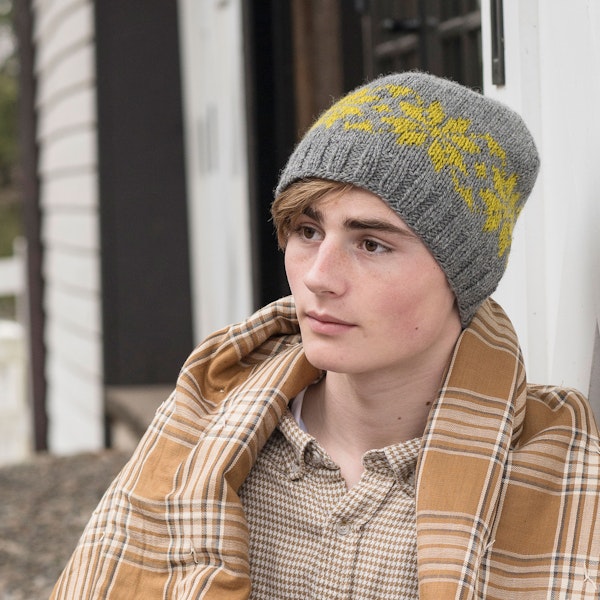 In the countryside, on campus, or on the slopes, this beanie is a quick knit in worsted-weight yarn with clever crown shaping and a band of graphic colorwork. Plus, it would make a great teach-your-friend-to-knit colorwork project.