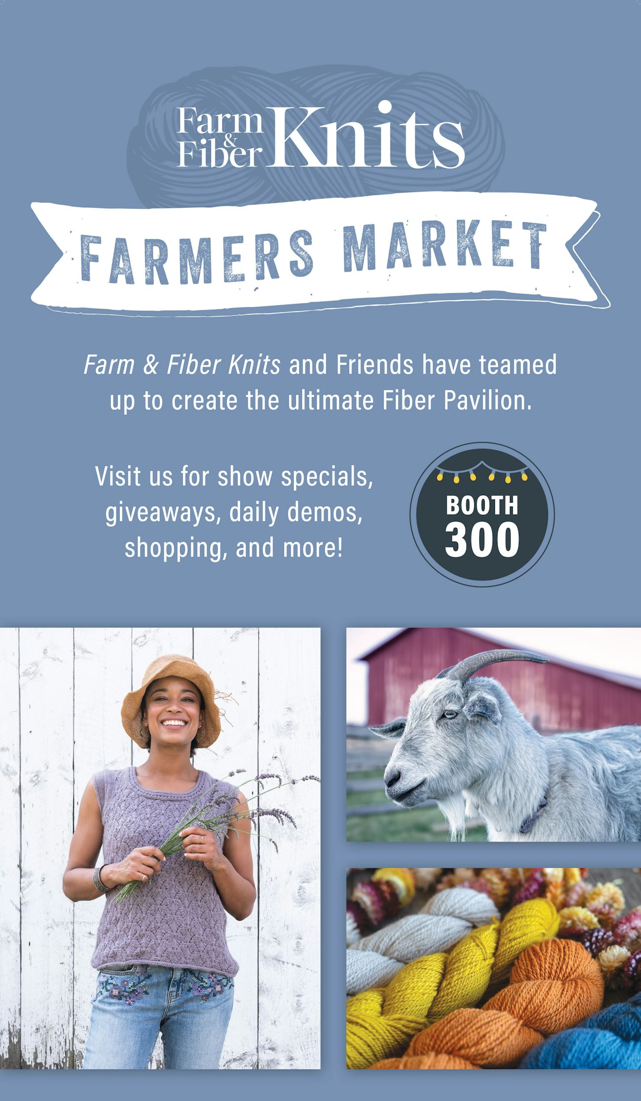 Longing for a real, woolly experience, we jumped at the chance to create a showcase for natural fibers and sustainable yarns . . . right in Times Square! We reached out to several Northeast farms and yarn makers and invited them to a Farmers Market at Vogue Knitting Live on January 17–19, 2025.