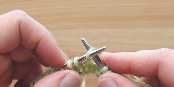 6) On your second row, your first stitch is the slipknot you made at the beginning. Knit it like you normally would. But then, you’ll discover that the rest of the stitches on this needle are twisted. Not to worry! Just knit each of these stitches through the back loop. You won’t need to do this again, it only happens on the foundation row.