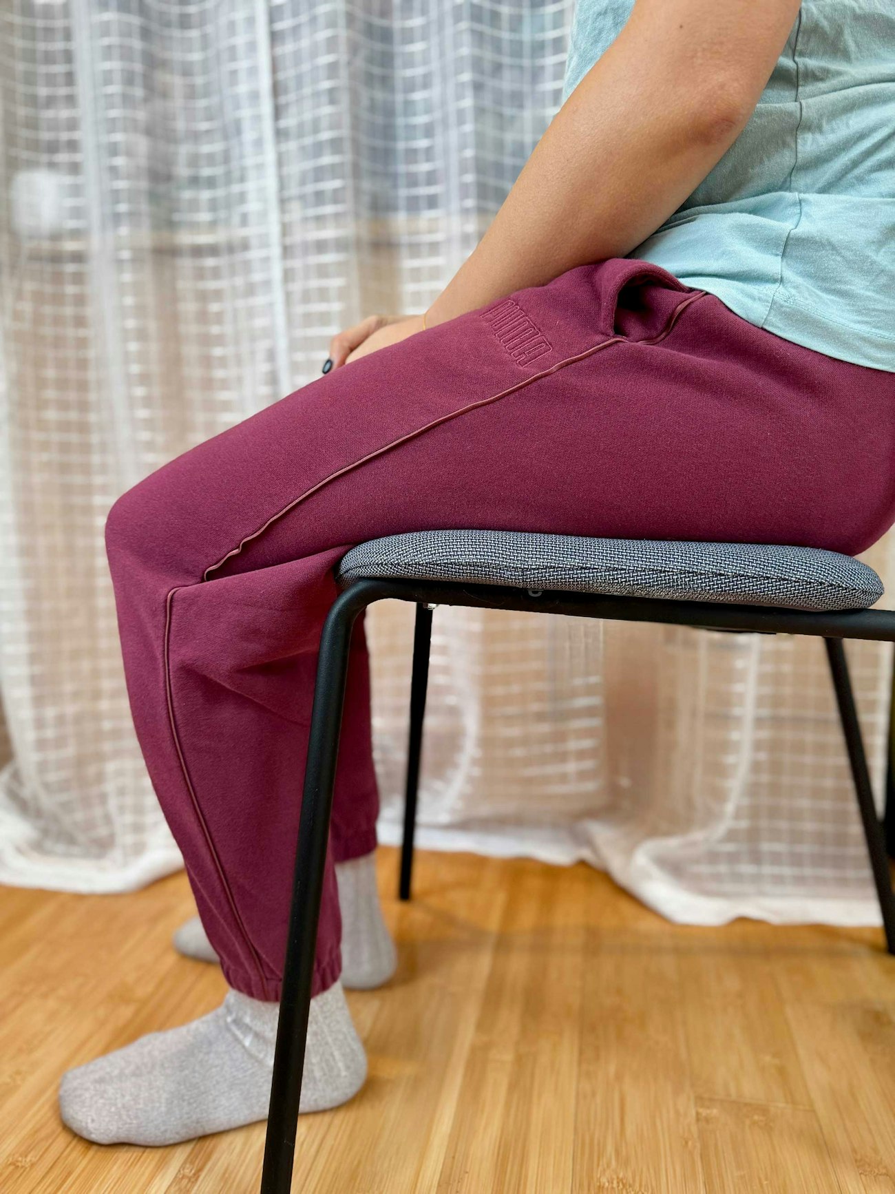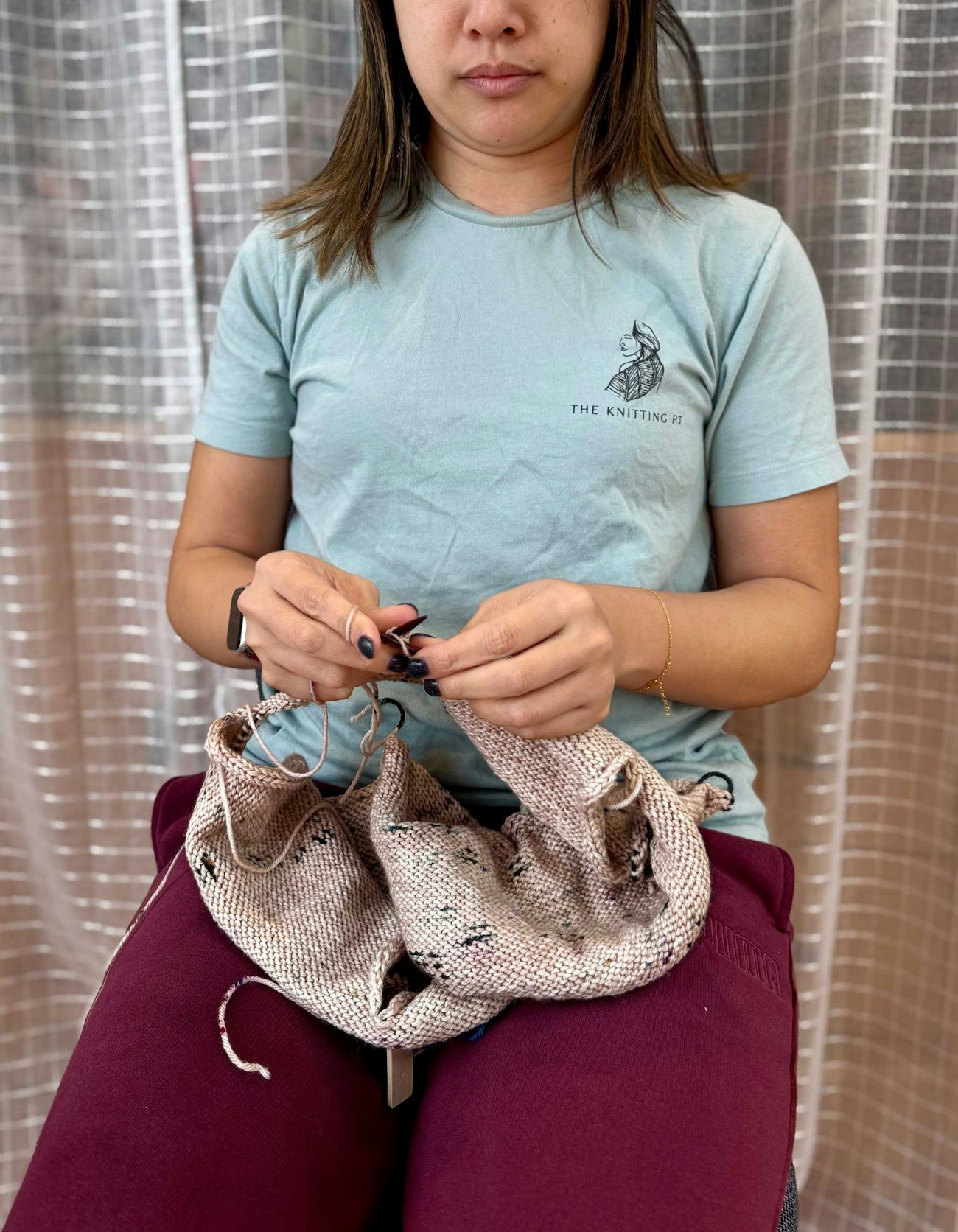For the lower body, aim to keep your back supported. Adding a cushion or rolled towel behind the small of your back can provide extra support if needed. Ideally, the hips should be level with weight evenly distributed between both sides, and the knees positioned slightly lower than the hips, though many knitters prefer to sit cross-legged without issue. A slight bend in the knees is often the most comfortable and ergonomic position, with the feet supported on the floor. Recliners can also work well, as they provide support to both the back and legs. If you have a history of low back pain or sciatica, avoid sitting with your legs fully extended in front of you for long periods of time. Introducing a gentle bend at the knees—such as by placing a pillow underneath them—can help reduce tension on the sciatic nerve and may lessen discomfort.