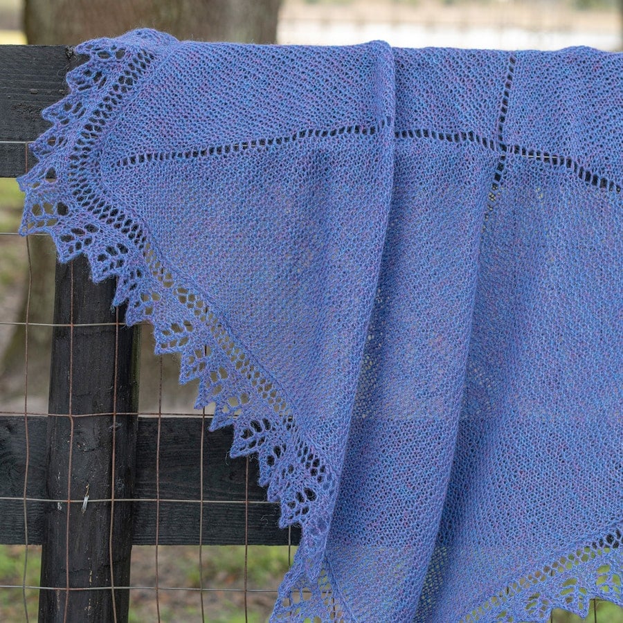 LoginThe body of this lace-edged blanket is based on Elizabeth Zimmermann’s garter-stitch baby blanket. Knitted in thick wool, it produces a proper blanket, but I dressed it up a bit, knitting it in Shetland jumper-weight wool and adding a lace edging from Barbara Abbey’s book Knitting Lace. The finished object could begin its life as a baby or lap blanket, then be washed and severely blocked to bloom into a lovely shawl, as shown here.