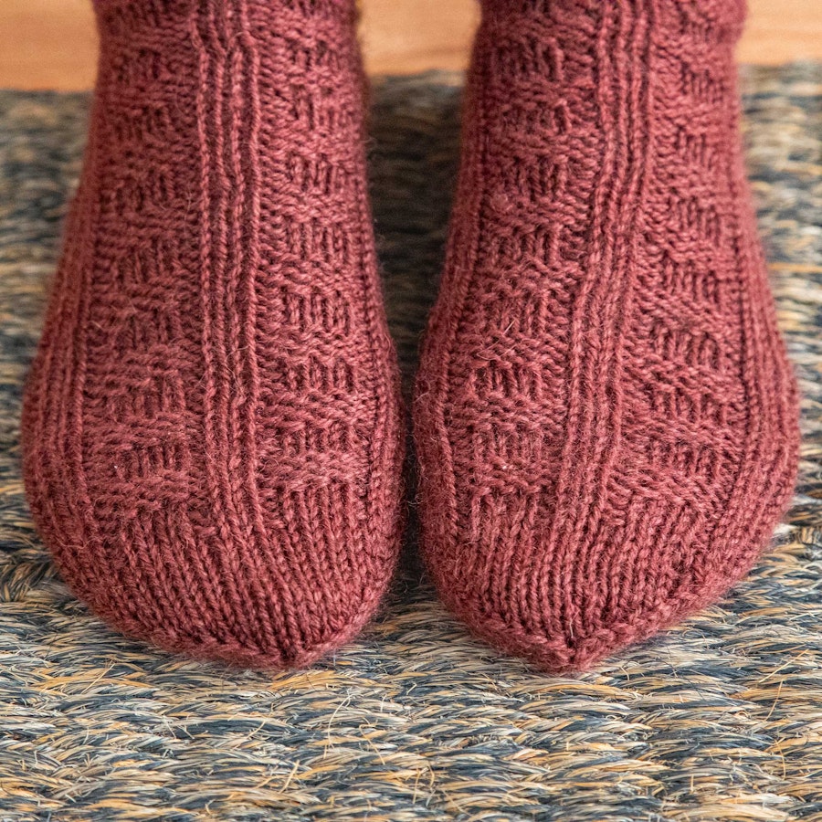 LoginA simple knit/purl pattern around the leg and along the instep adds textural interest to these sturdy socks, which were named for the sheep breed native to the Isle of Man. To prevent felting and shrinkage, handwash these special socks.