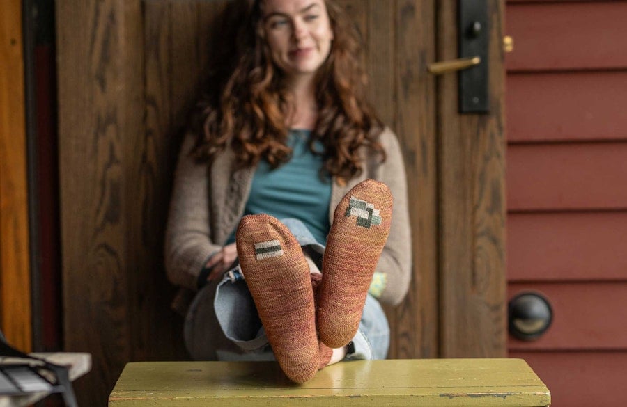 About Kate Larson: Kate Larson (she/her) is Senior Editor of Farm & Fiber Knits. For nearly as long as Kate has been handspinning and knitting, she has been helping others find their paths as makers and forge deeper connections with the landscapes that produce the wool and cotton, flax, and silk that they hold in their hands. While Kate has published a book, many articles and patterns, and several instructional videos, she especially loves celebrating the work of other fiber folks. The editor of Spin Off from 2018–2025, she directs spinning events in addition to editing Farm & Fiber Knits. If you can’t find Kate, she’s most likely in the barn having a chat with her beloved Border Leicester sheep.