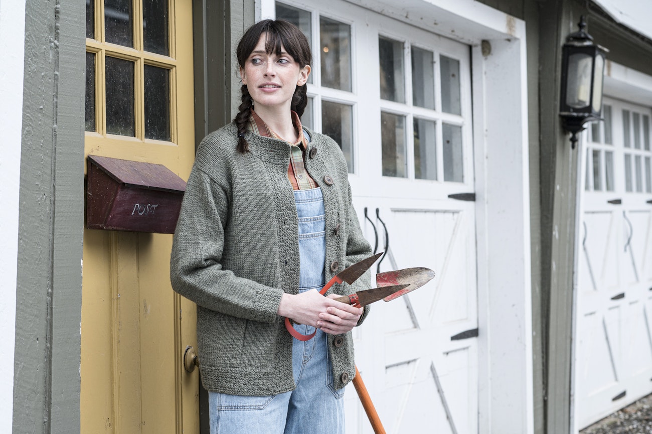 Mary Lou designed the Chore Jacket using Brown Sheep’s Harborside Aran. Photo by Gale Zucker
