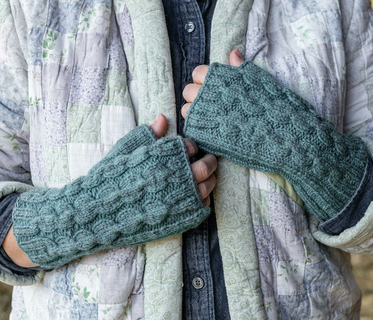 Mary Lou Egan designed the new Blazing Star Mitts using Brown Sheep Prairie Spun DK. Get it now in the Farm & Fiber Knits Library.