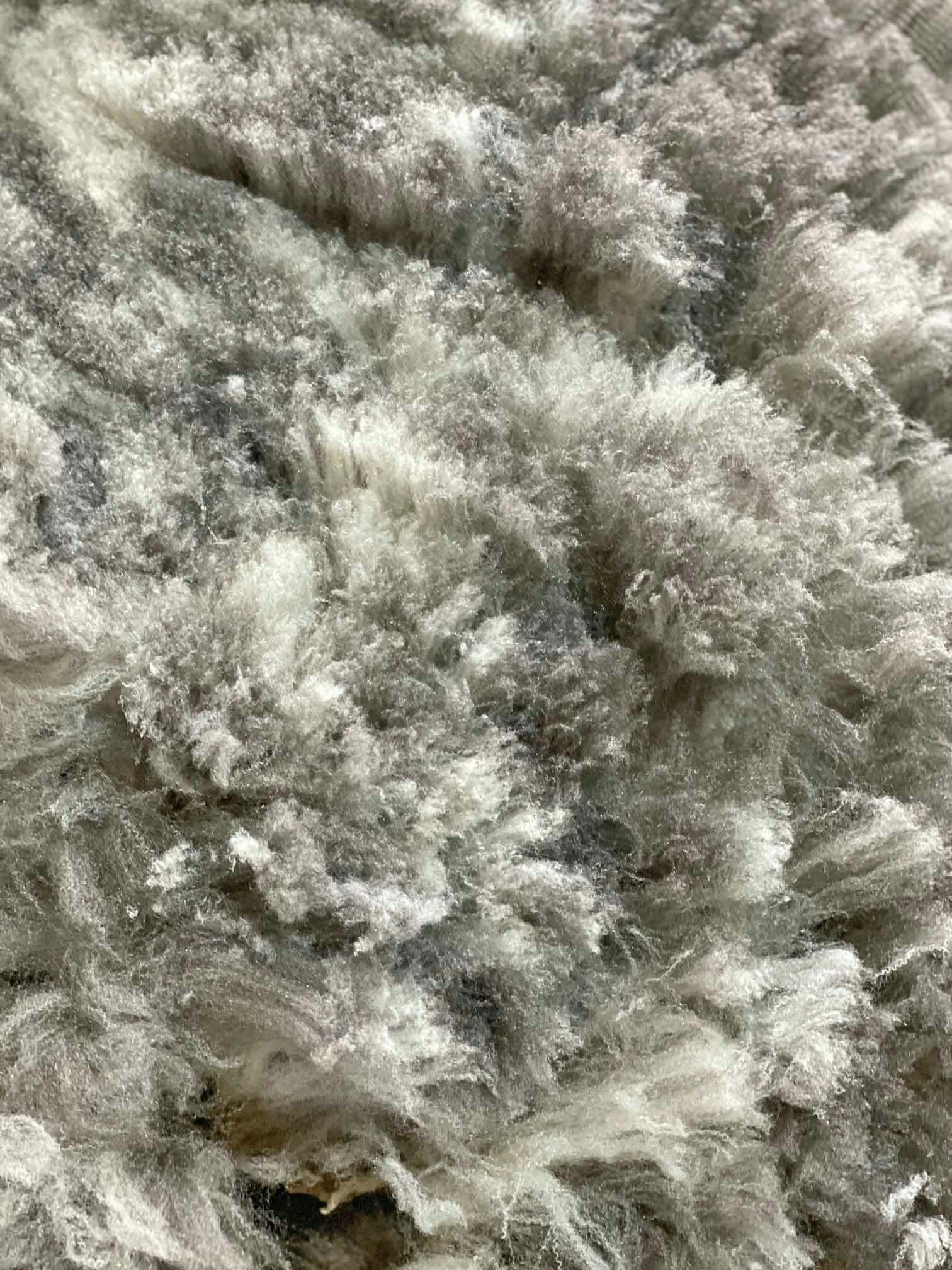 Within a month of shearing, Diana carefully skirts, weighs, and sorts her fleeces into fiber lots. Diana evaluates each fleece for quality and skirts them vigorously. Skirting, the process of removing the icky bits of wool from the outer edges of a fleece, is key to making awesome yarn. She keeps a spreadsheet of flock wool data to track the wool as it goes through the process of becoming yarn.