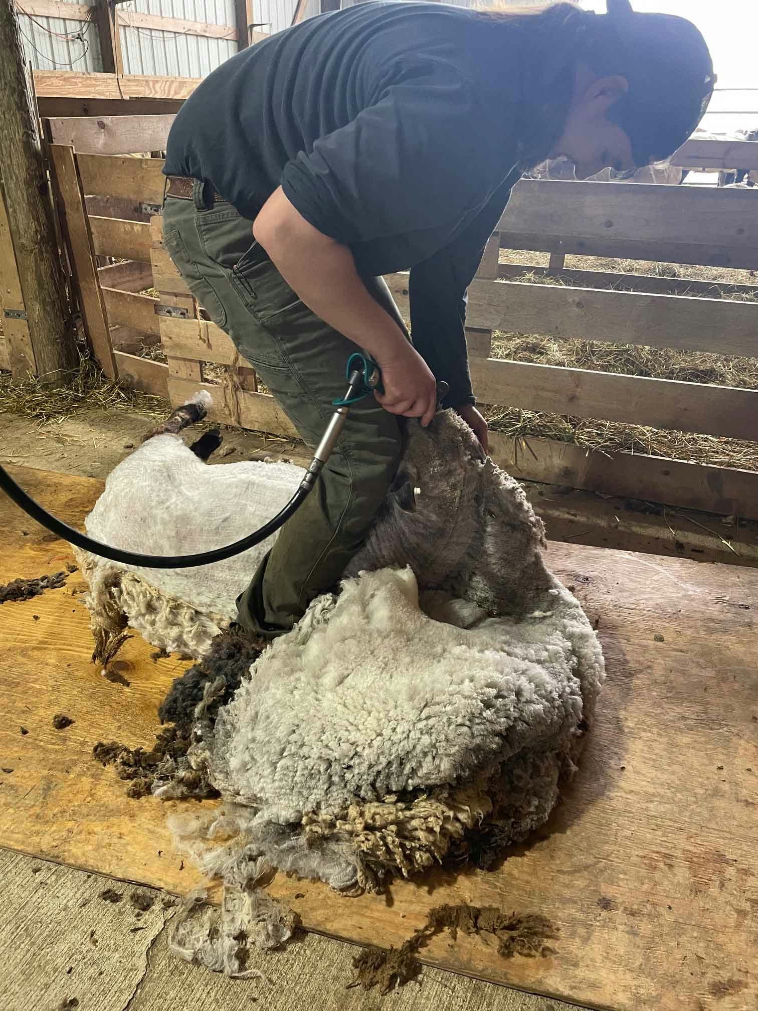 Harvest Hill Acres holds three different shearing events throughout March, April, and May. The sheep are shorn in separate groups by color, starting with the older ewes and ending with the rams. The weather is also a big consideration since wet sheep cannot be safely shorn or their wool properly stored. Diana conducts shearing carefully to ensure that the sheep are humanely handled and their fleeces collected properly.