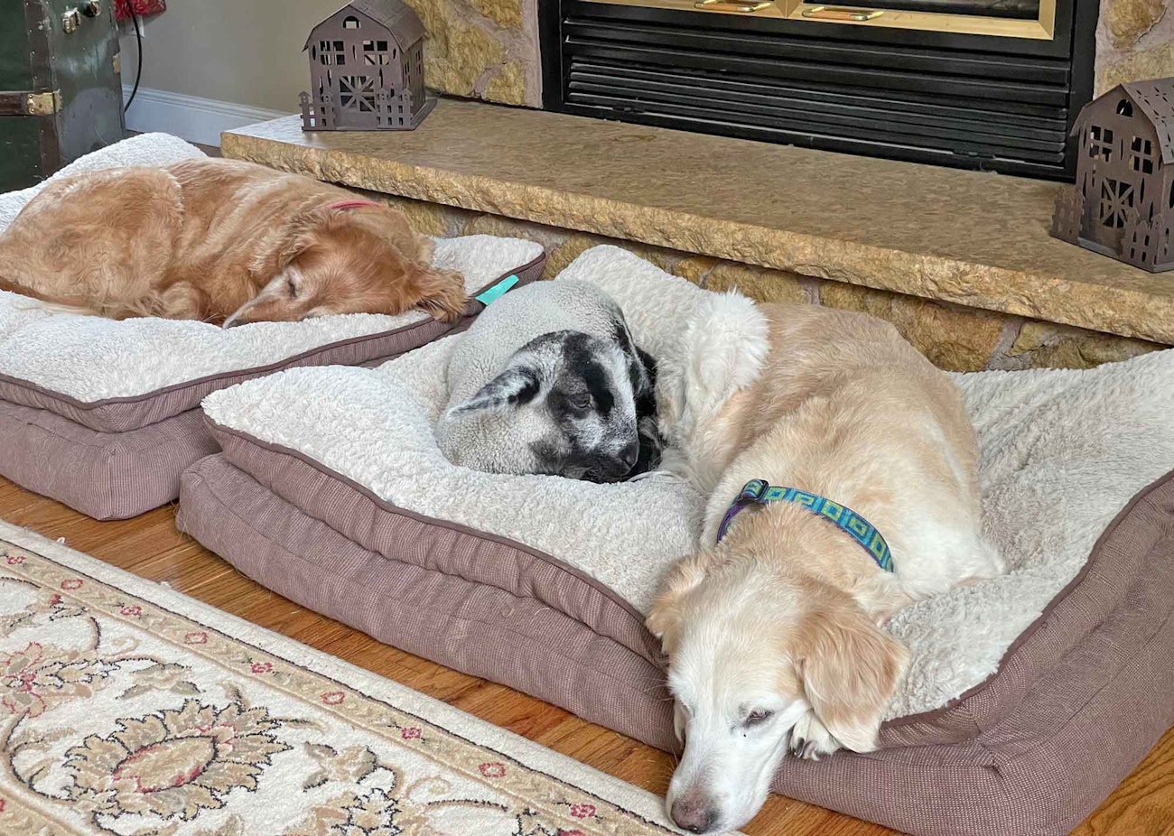Fungo snuggles with the dogs. Photo by Diana Diana Weinhardt-Treangen