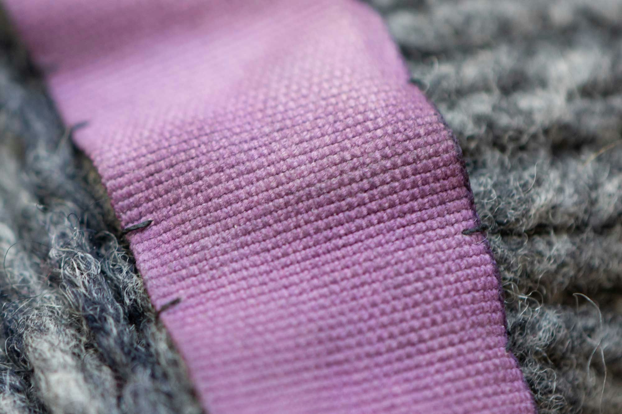Some steek-hiding methods use layers of extra knitting, and while they work, I find them too bulky for my taste. Experience tells me my raw non-superwash steek edges aren’t going anywhere, but my formative years spent shopping with a sewist who rejected any poorly-made seam (no matter how cool those jeans were) still makes me queasy about the idea of an unfinished edge.
