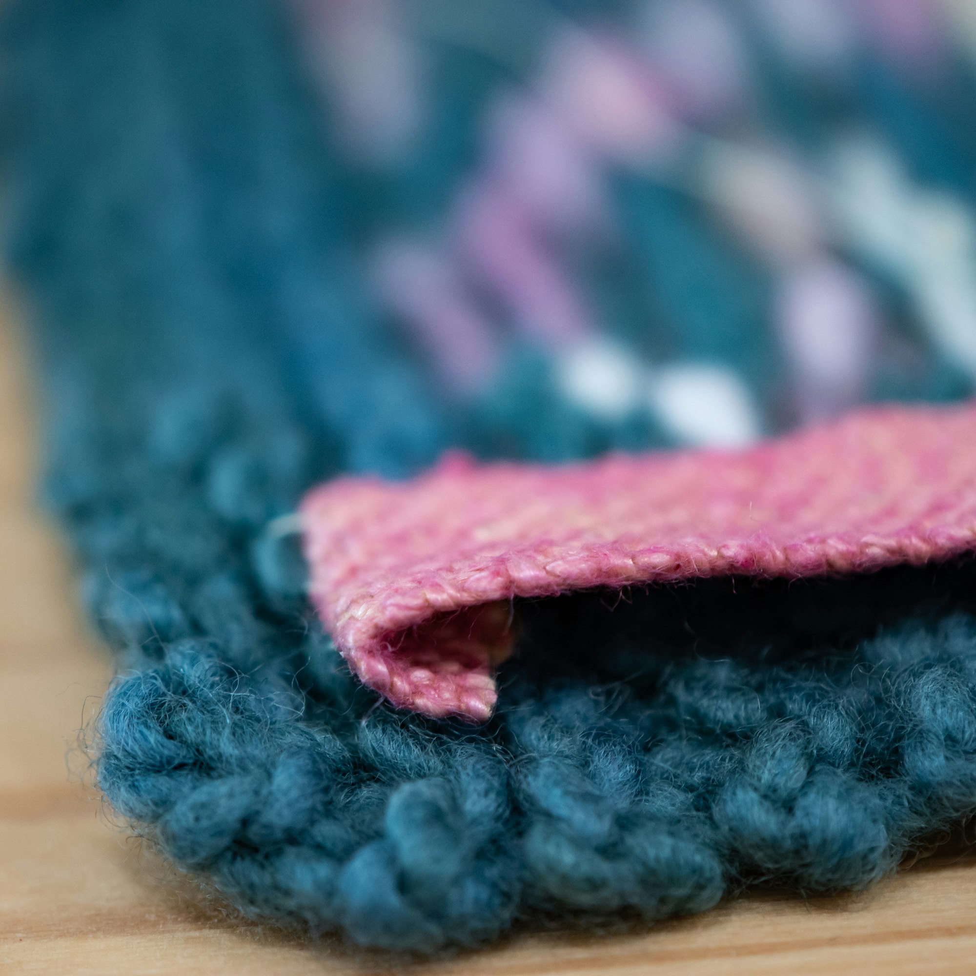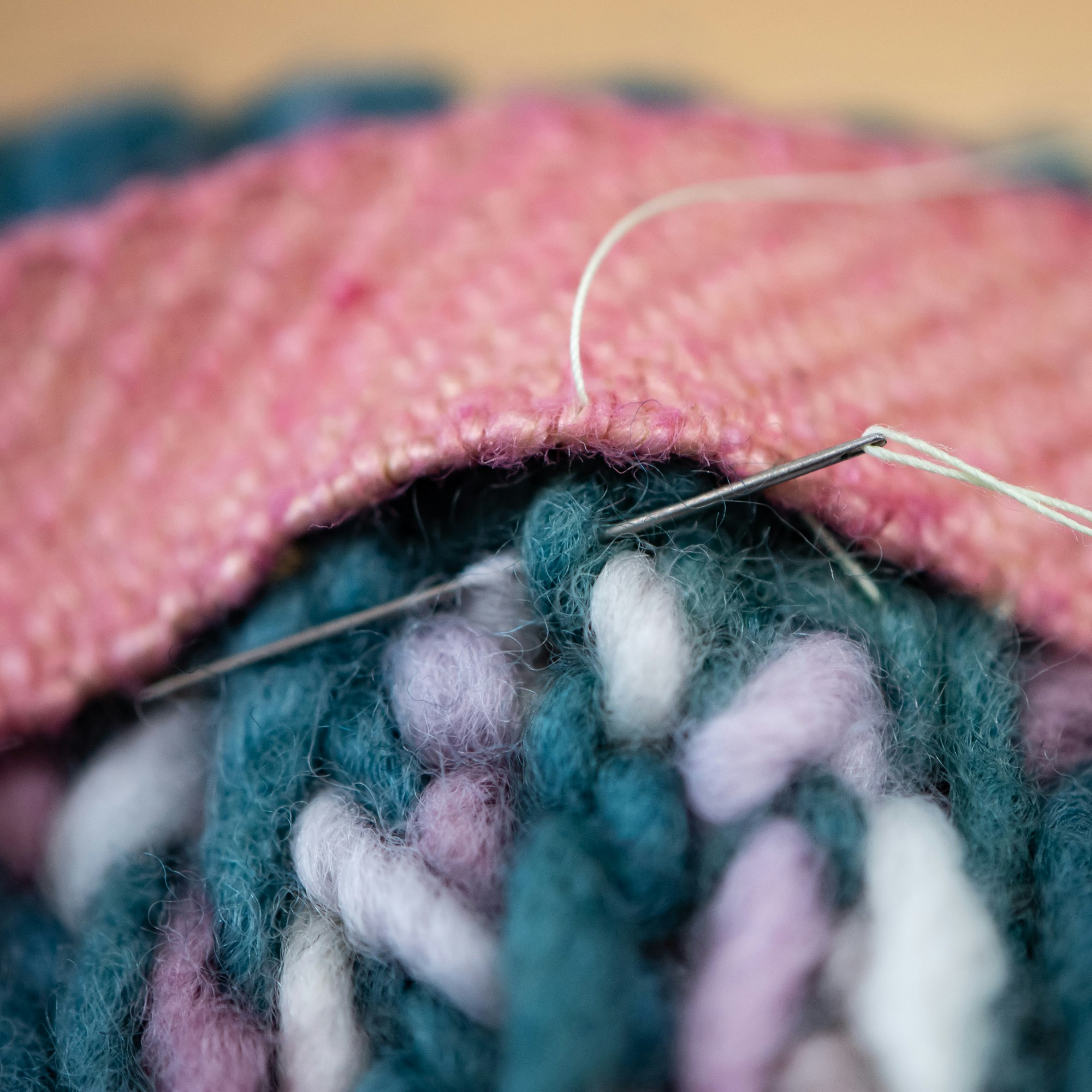 When I first started using this technique, I used simple cotton ribbon, but have since started weaving my own bands for that extra touch of customization. Sometimes these bands use yarn that’s left over from the sweater project, creating a coordinating band that makes me feel extra pulled-together.