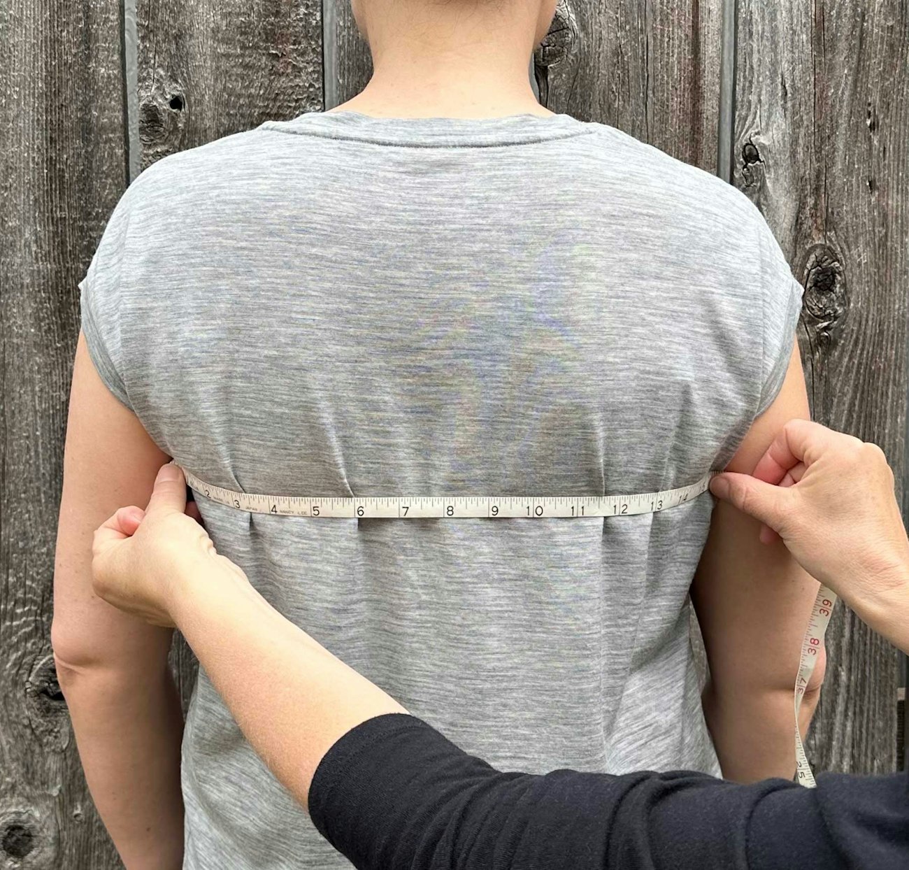 This width across the back is not the same as the cross-back measurement, which sewing patterns (and even some knitting patterns) include. The “cross-back width” sometimes measures from armhole seam to armhole seam across the back, or sometimes from shoulder to shoulder, either of which may be a similar number but is not the same.