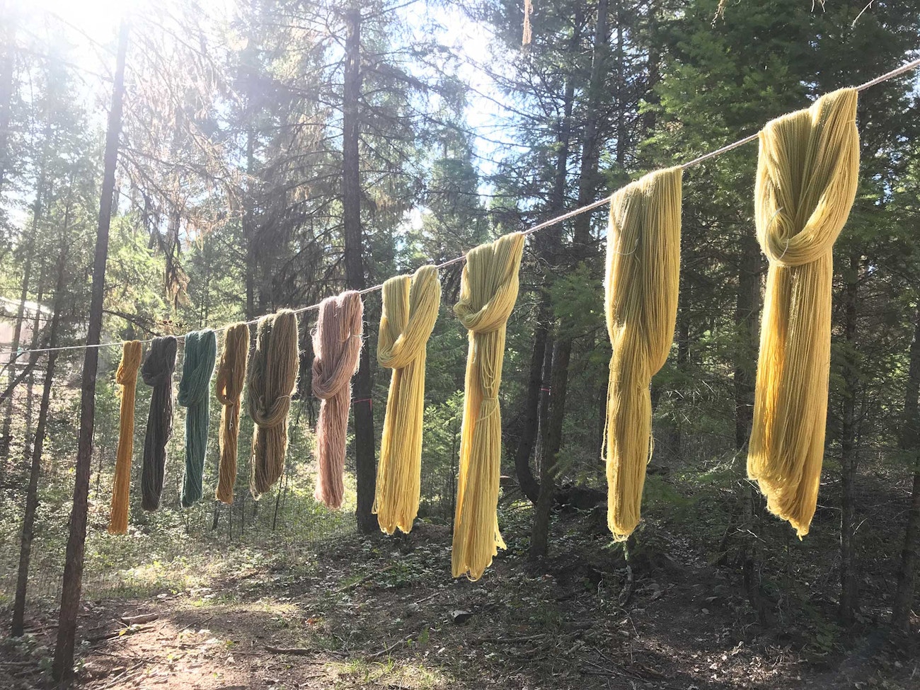 Madeline's dyed skeins hanging out to dry. Photo by Madeline Keller-King