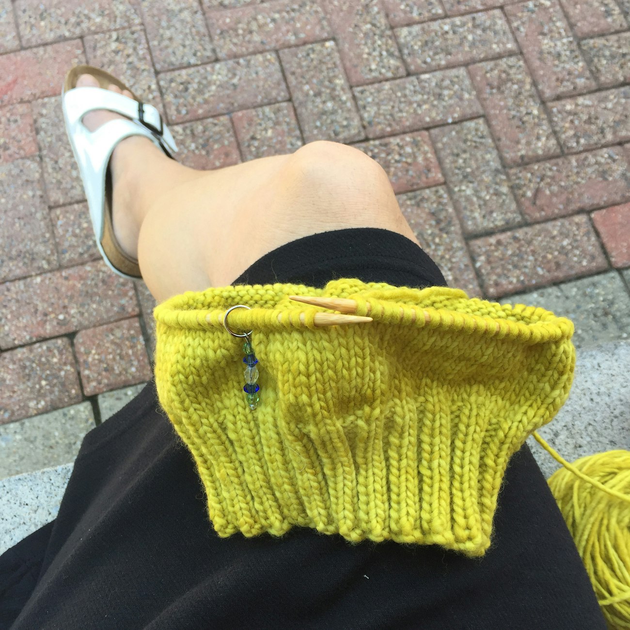 Knitting on the patio is a great way to enjoy being outside when the weather is warm.