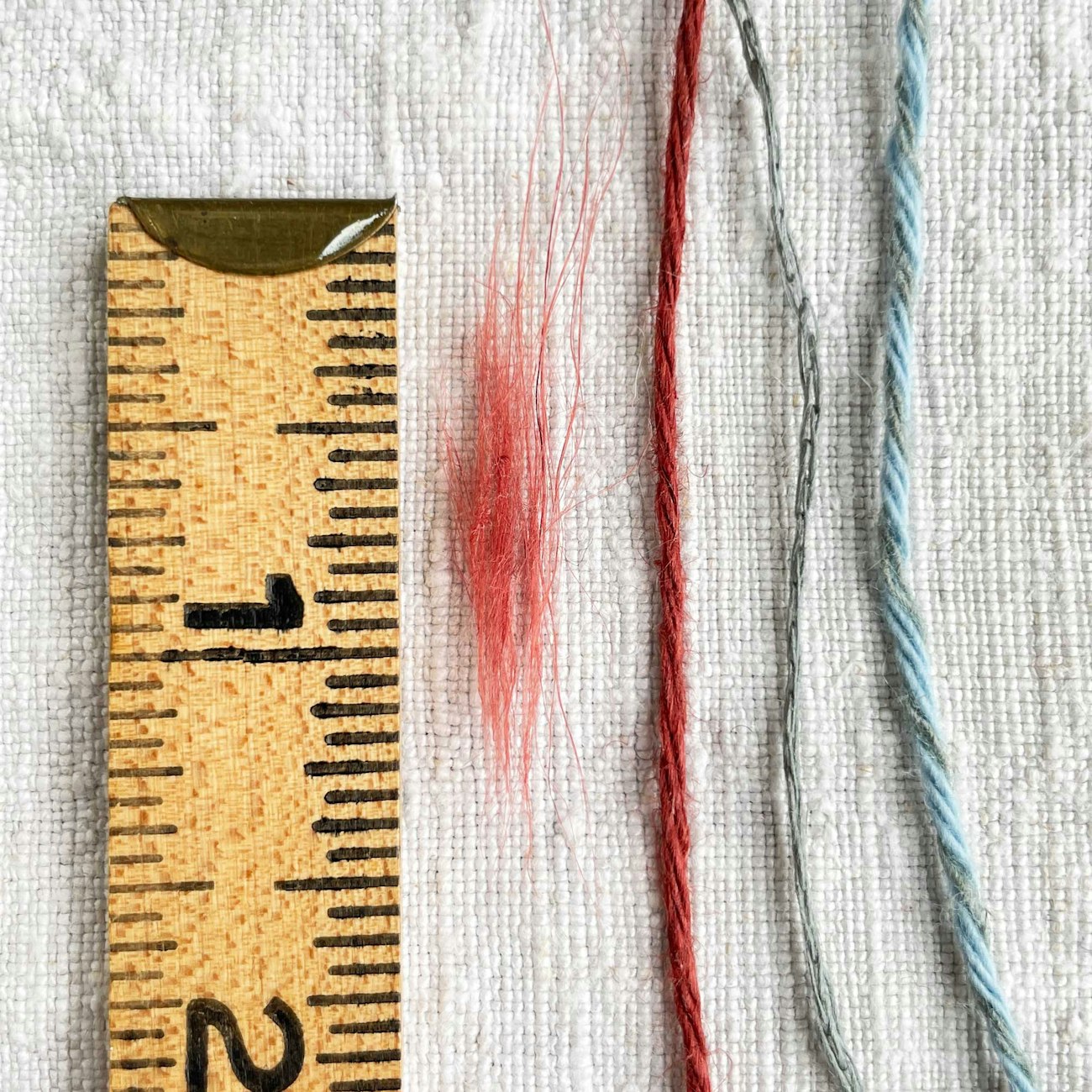 What’s in your yarn? Simply untwist the end and see what’s inside! This classic wet-spun Euroflax is created with fibers about 1" (2.5 cm) long. Other yarns to try are chainette (center) and cotton/linen or cotton/hemp blends (right).