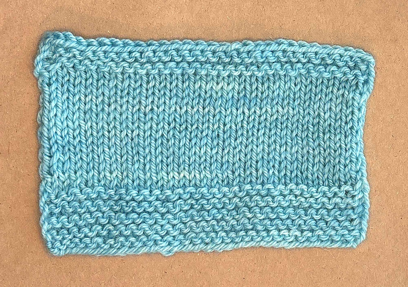 For edges that will be exposed, you’ll need to balance the energy by combining both knit and purl stitches. It need not be a precise 50/50 split. Depending on your yarn and your knitting gauge, you might need no more than ½" on horizontal edges and 2 stitches on vertical edges to prevent curling.