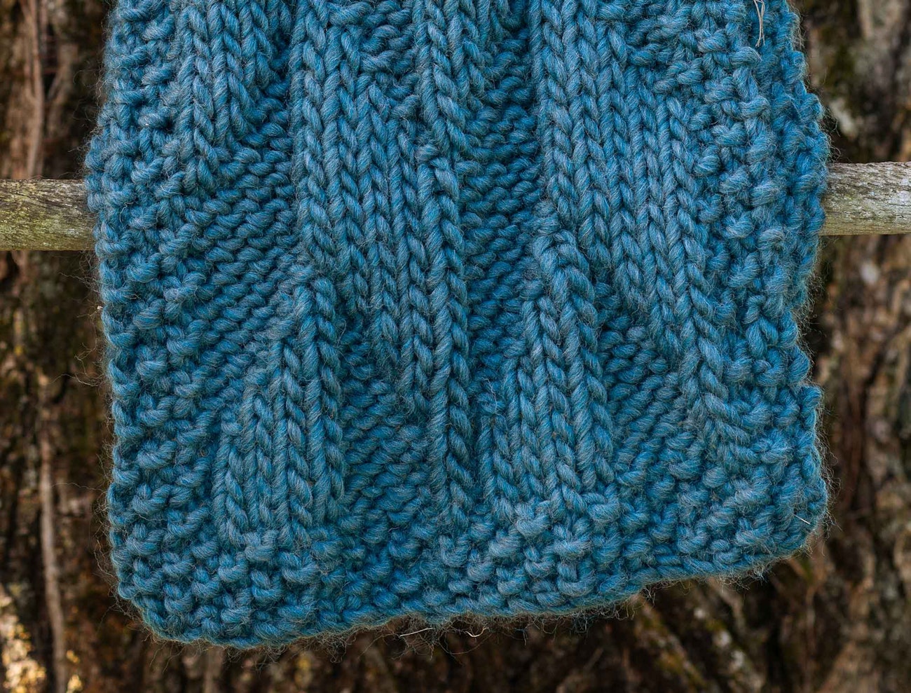 The bold texture of seed stitch worked in a super-bulky yarn is a great frame for the stitch pattern in the Loon Lake Scarf.