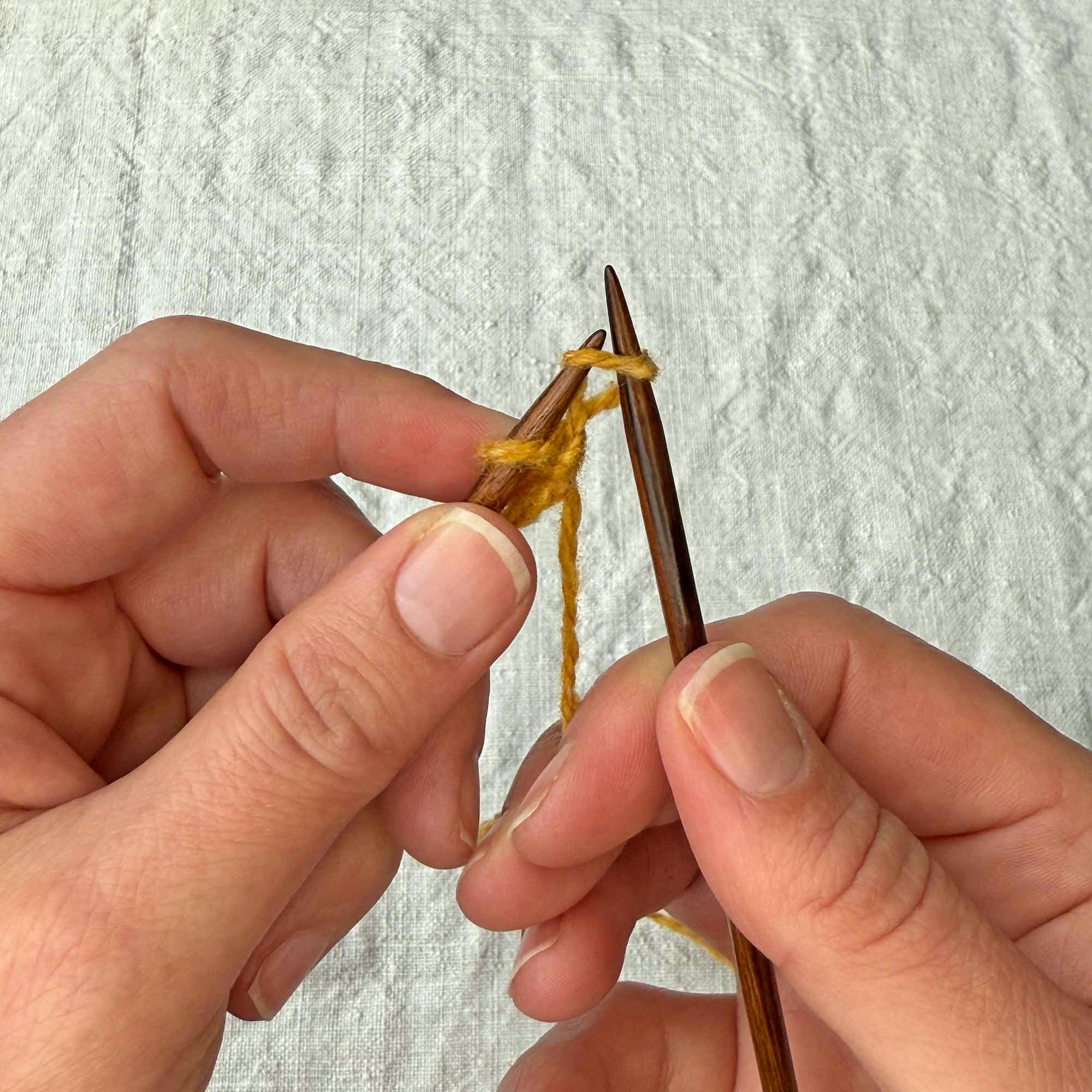 Start with a slipknot once again, and create one knitted cast-on stitch.