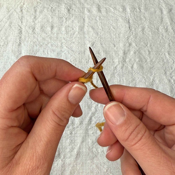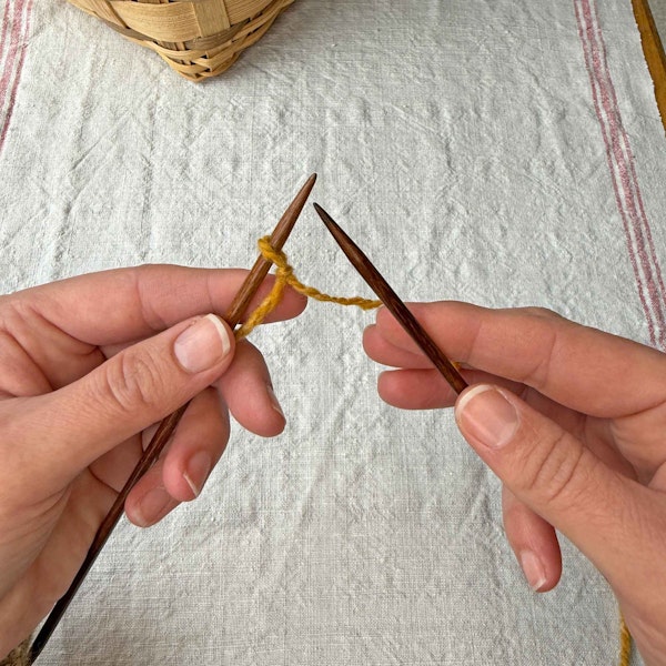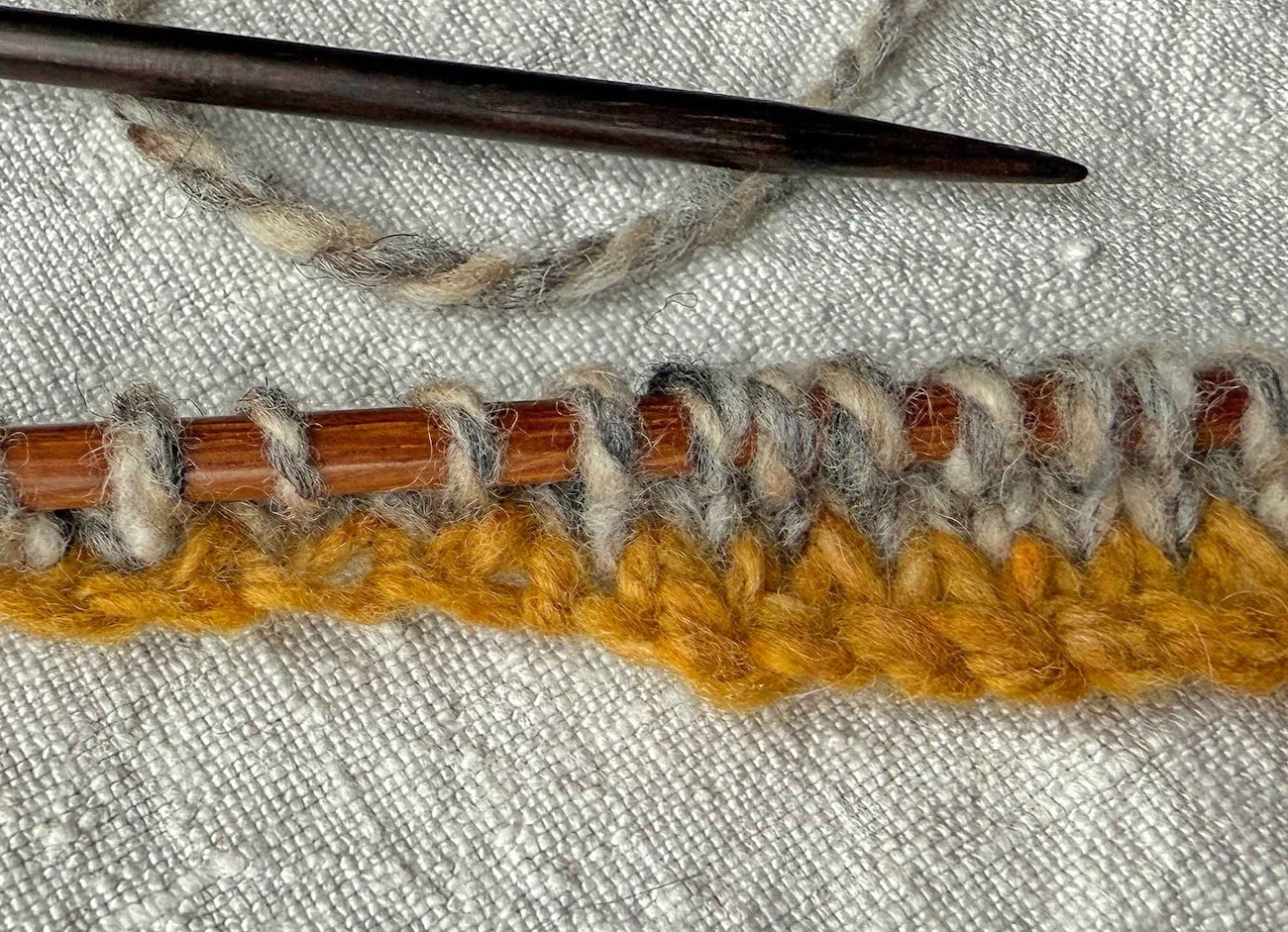 I sampled using Soft Donegal from Studio Donegal, a soft, woolly, and forgiving yarn that works well for both of these cast-on methods. If you’d like to explore these cast-ons and more, I suggest choosing a stretchy, bouncy wool like this that lets you play.