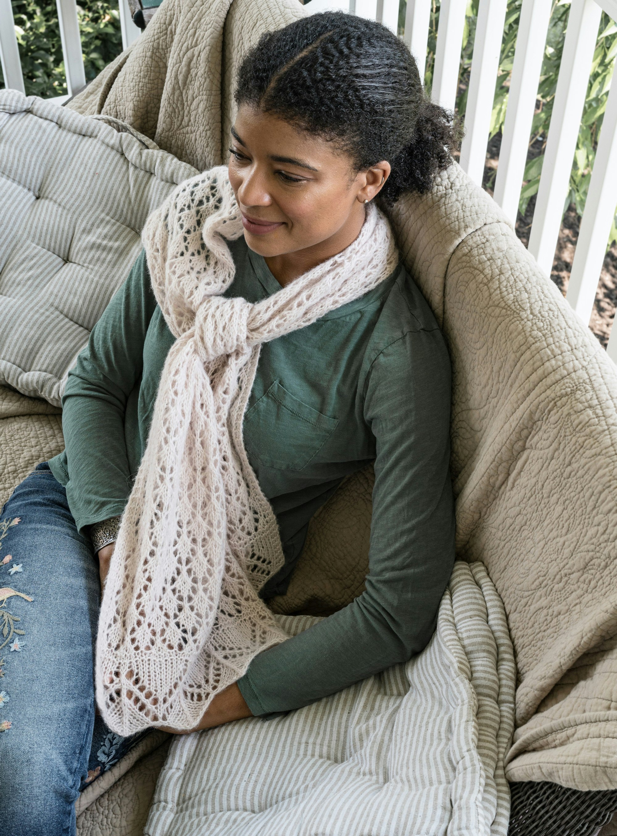 When I think of clouds, I think of soft yarns. And what can be softer than luxury yarns like cashmere, alpaca, and silk? Wrap yourself in a cloud of lace with the Whisper Wrap, knitted in a blend of cashmere, alpaca, and silk for an elegant accessory you’ll treasure for years to come—no matter what the current trends say! Or go for pure luxury with the Sandglass Cowl, knitted in June Cashmere’s 100% cashmere yarn.