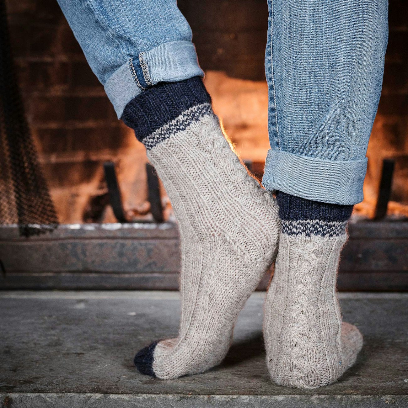 The SheepSoft DK is a true DK-weight yarn that is soft yet strong. Whether you want to wear the socks as boot socks or around the house, the long staple length of the fibers gives the yarn strength and luster.