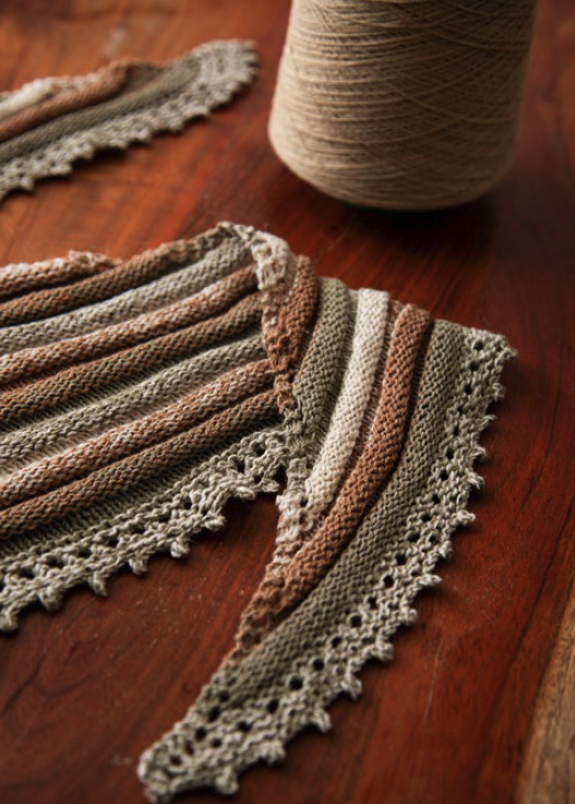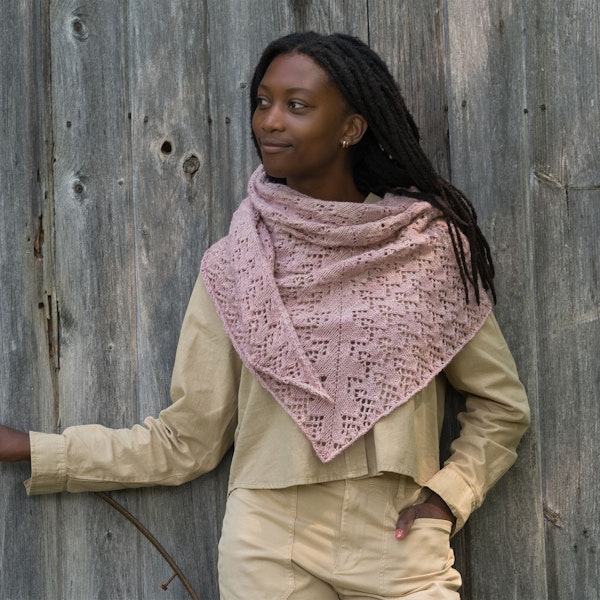 One of the most common modern shawl shapes, the triangle requires shaping in pattern. This takes clever design work.