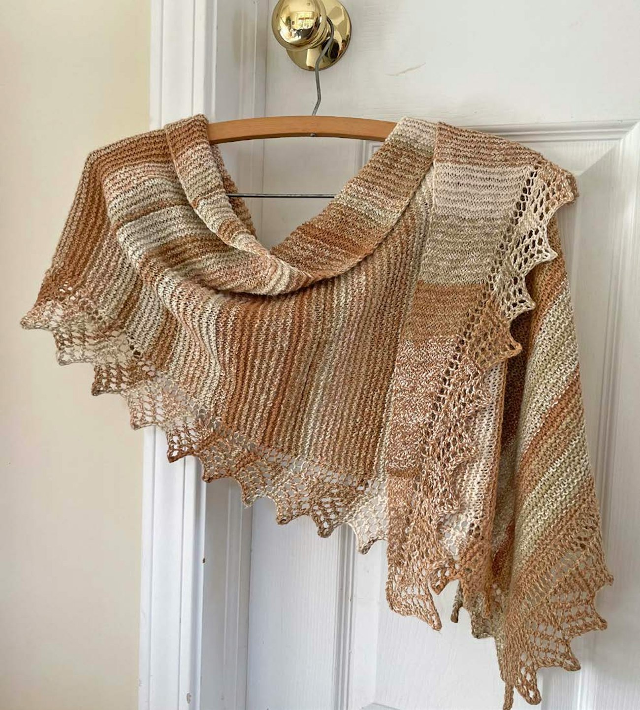 If you’re newer to knitting, I would recommend a basic rectangle for your first shawl, perhaps worked in garter stitch or a simple lace pattern. Cast on at one narrow end, knit the length of the shawl, then bind off. This eliminates the complexity of shaping in pattern.