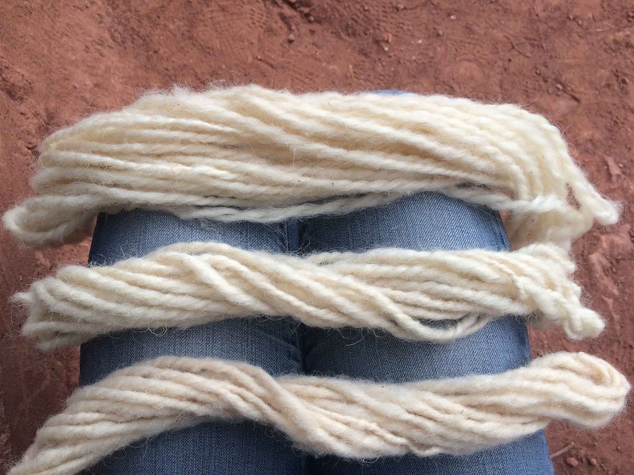 A couple of the older women were drawing out a much thinner, more tightly spun yarn called ifilan n’tqasher. In their dialect of Tashelhit, ifilan simply means yarn, and tqasher means socks. The ifilan n’tqasher seemed to be a worsted or bulky weight yarn.