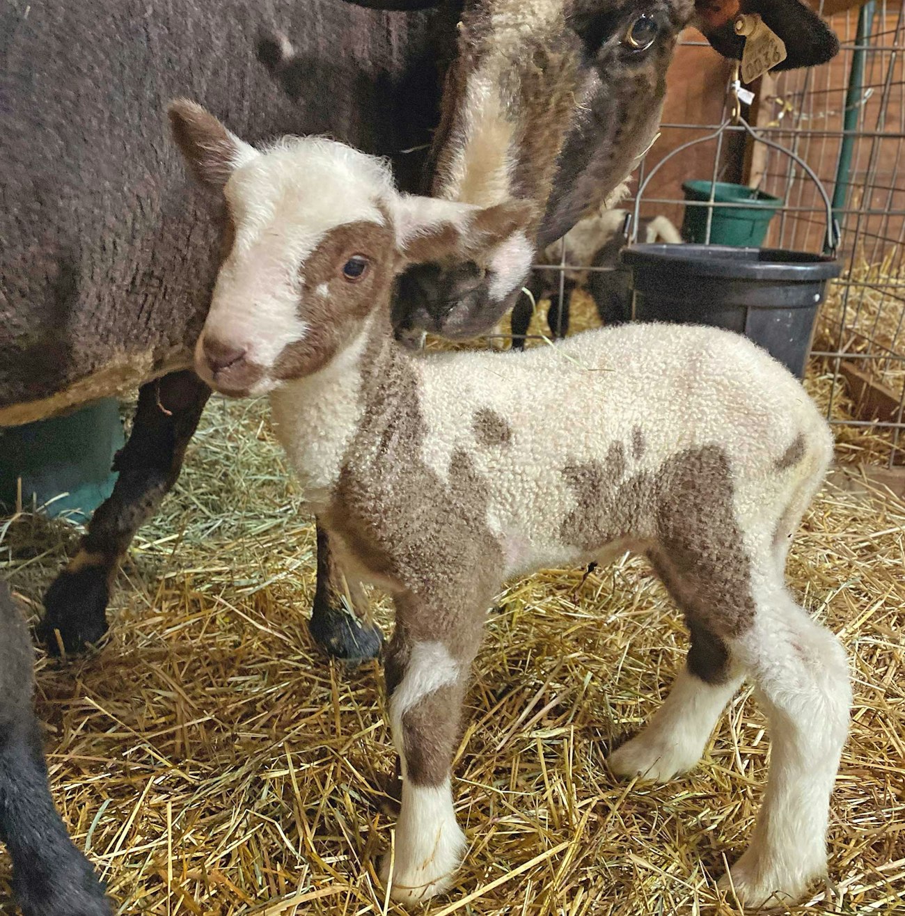 ACM: I did get my “holy grail” colored lamb this year: a ewe with bold body spots and dilute moorit color—that’s a set of three recessive color traits all stacked—so her arrival was pretty exciting!
