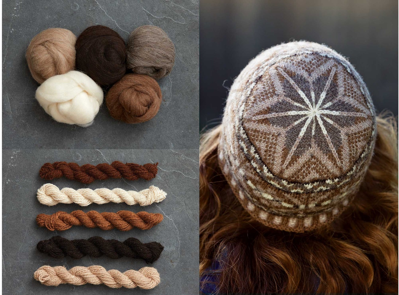 Kate selected Shetland wool combed top in five shades. When working with naturally colored