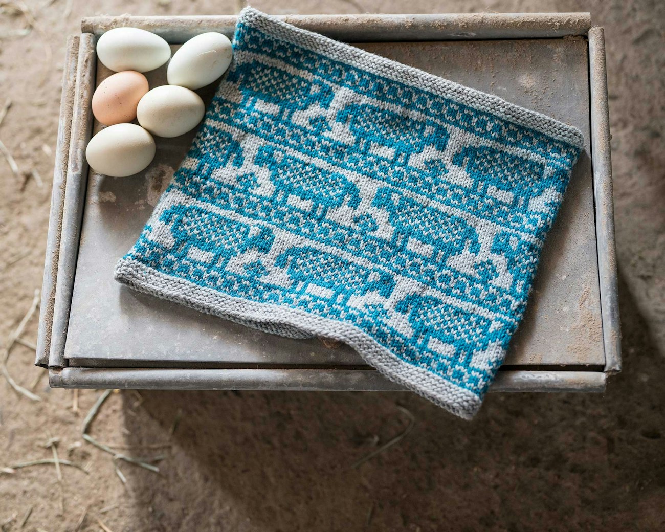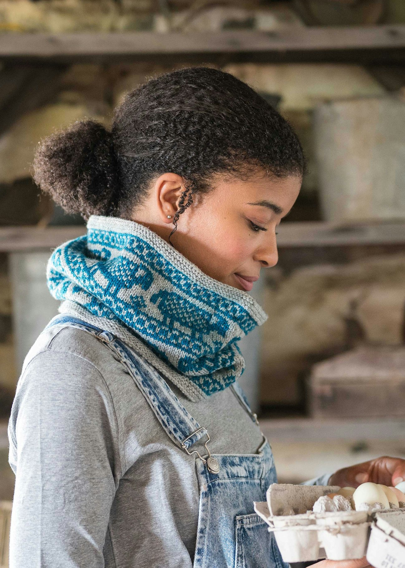 Tanis Gray's On the Farm Cowl is worked in the round using stranded colorwork.
