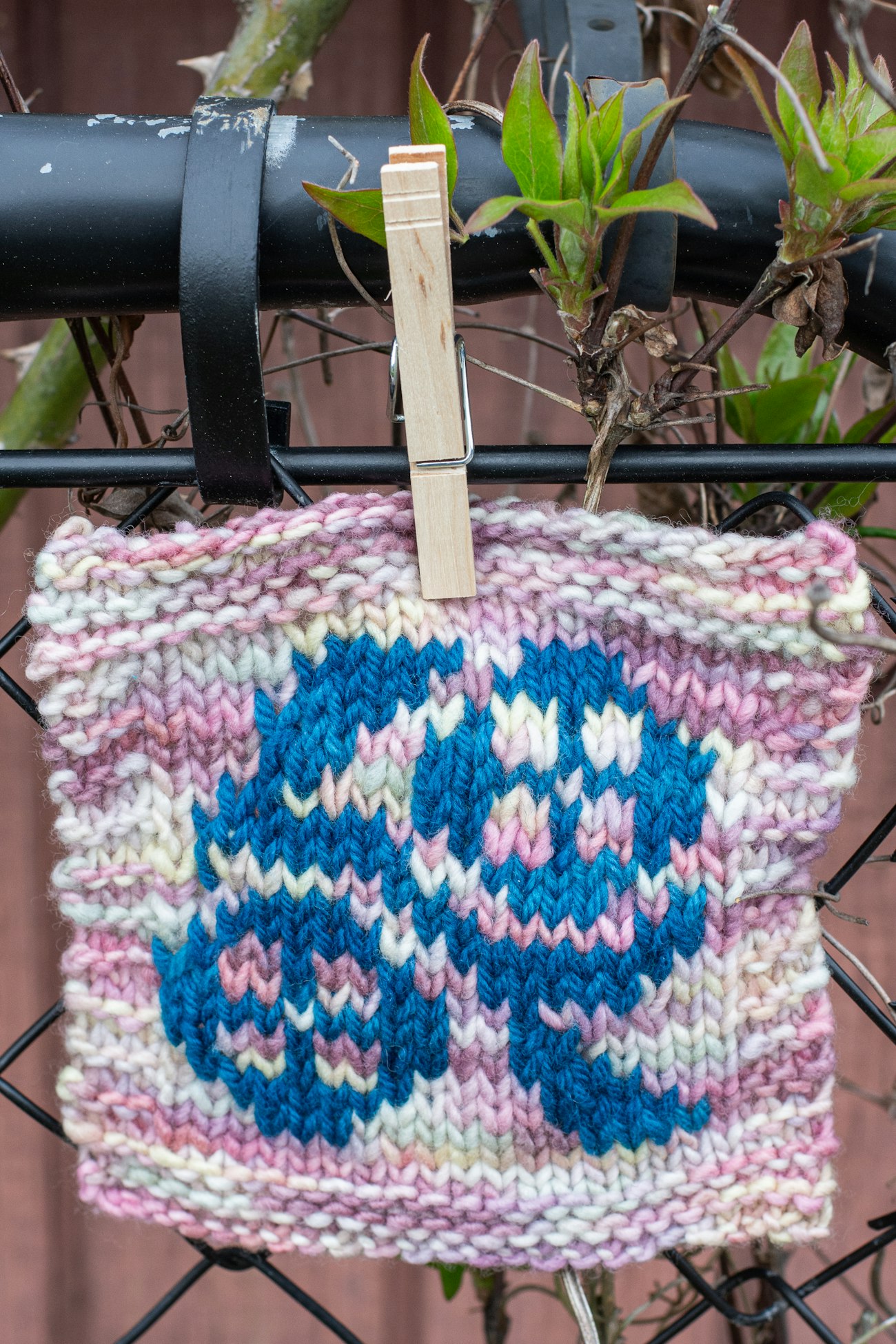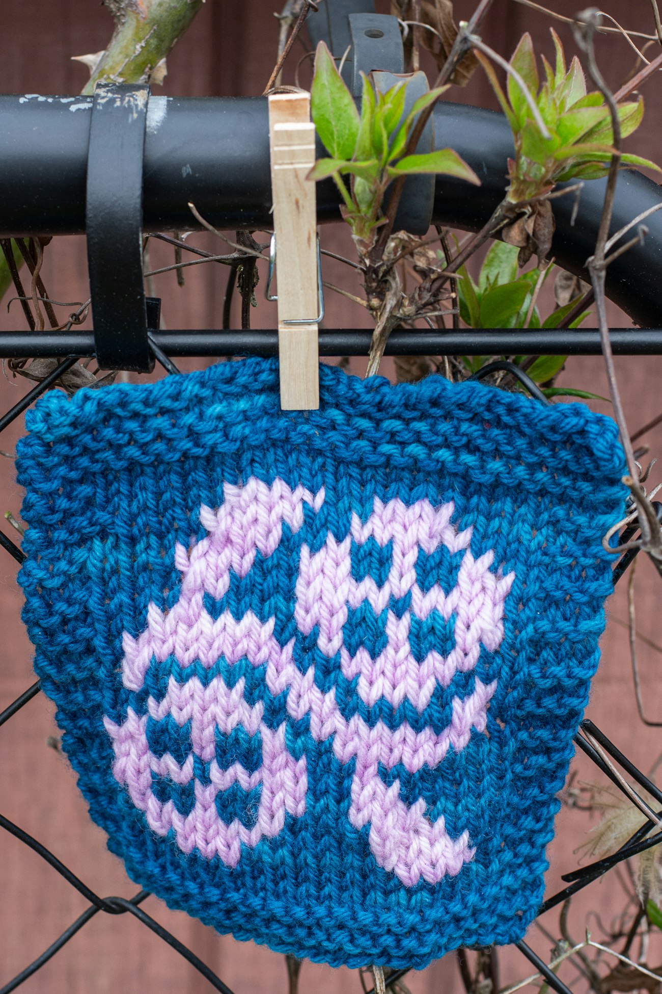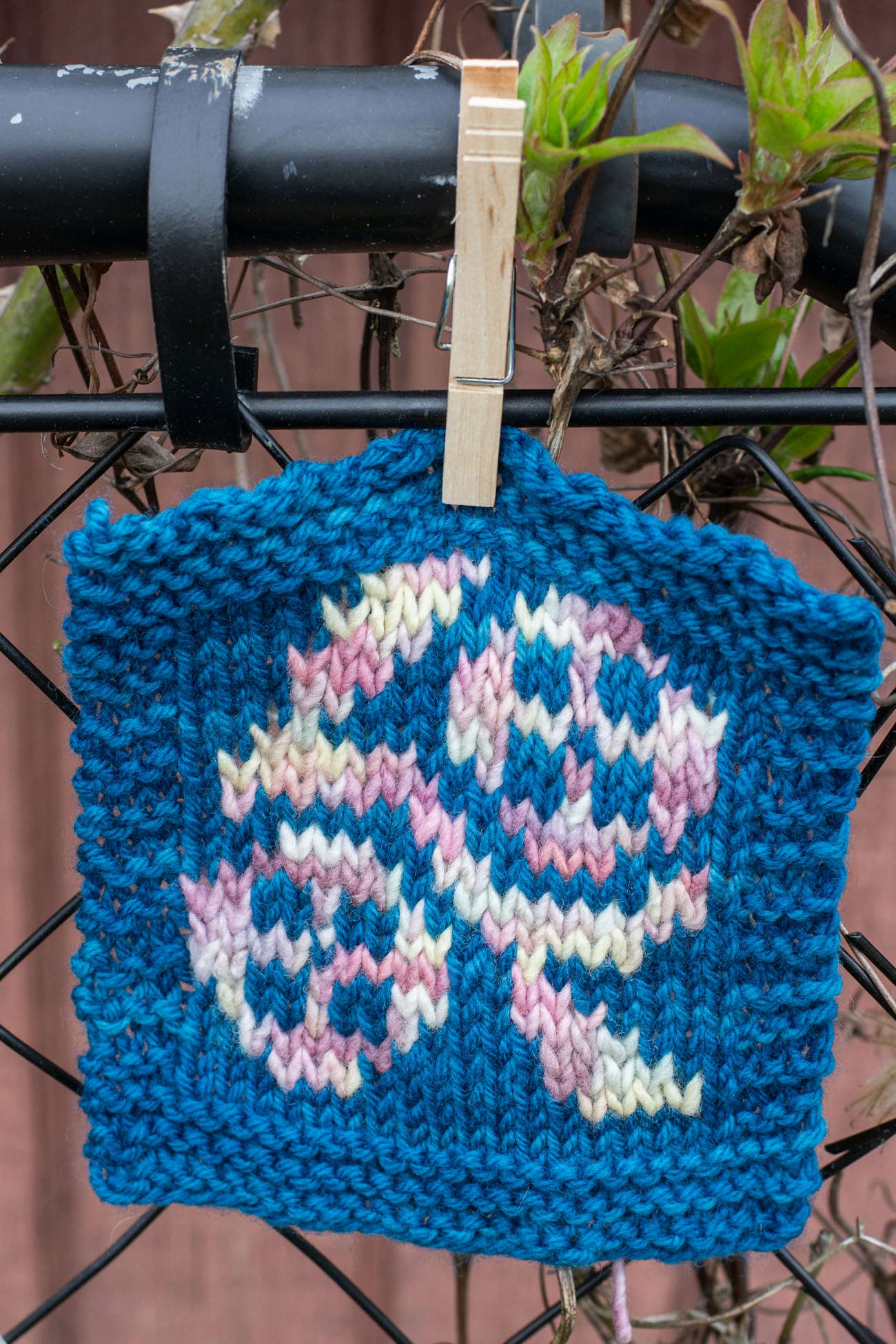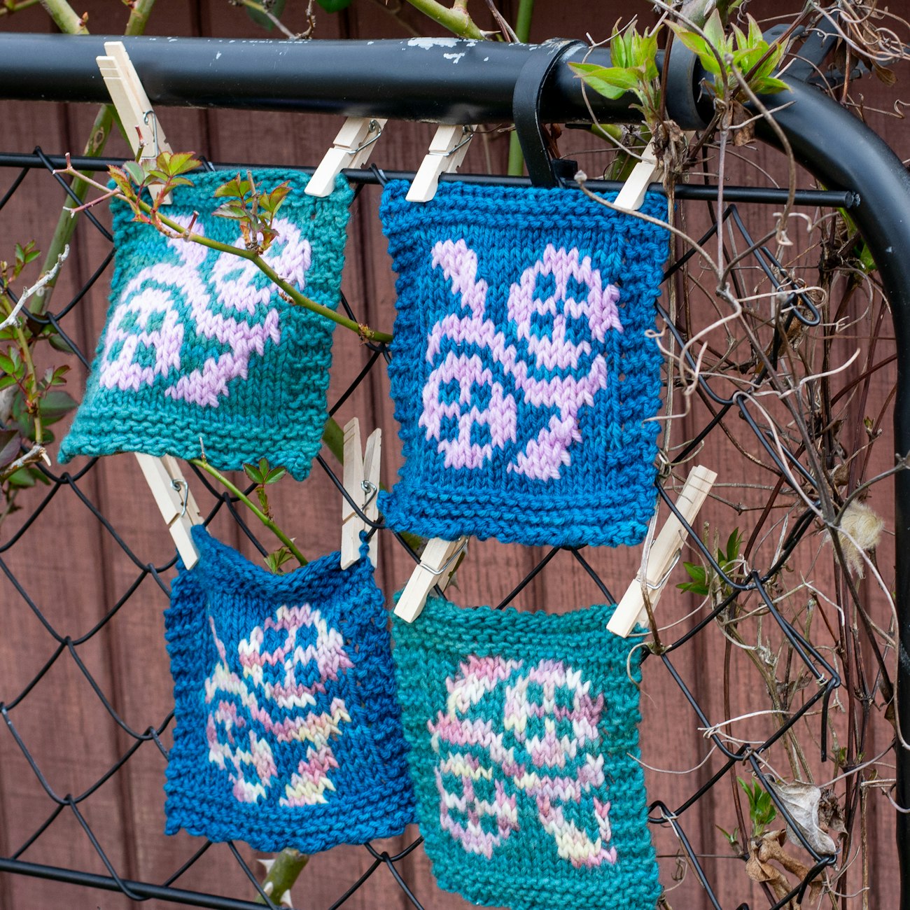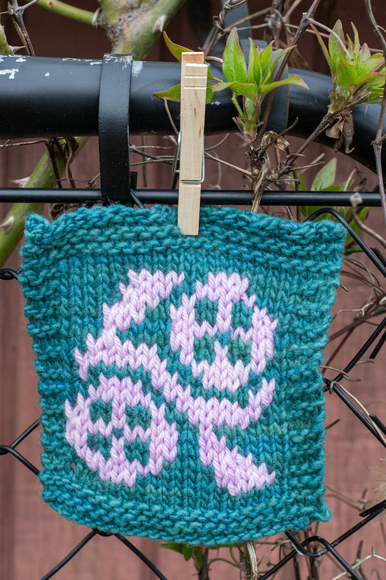 Usually I choose solid colors when working stranded colorwork, but I wanted to see what happened when a variegated color like Meltaway Mints combined with a solid or semi-solid color. With its pale yellows, greens, and pinks, Meltaway Mints reminded me of dappled light falling on flower petals, and I wanted to see if that effect could translate into knitting.