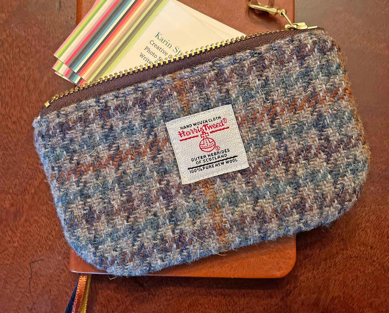 The author picked up this zippered pouch, stitched from authentic Harris Tweed wools by Allison Piracci of Solulu Handmade. Photo by Karin Strom