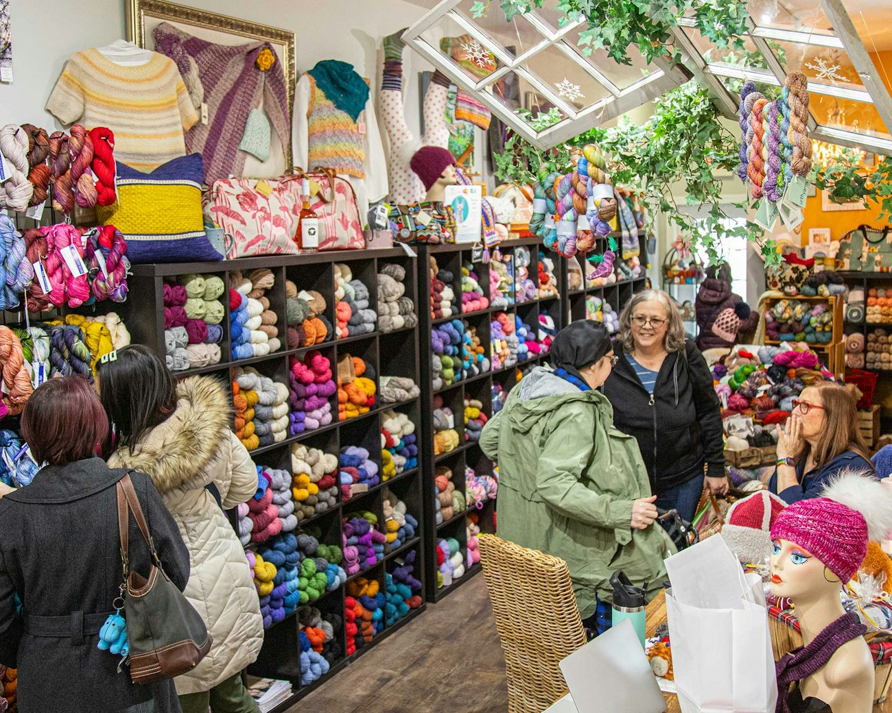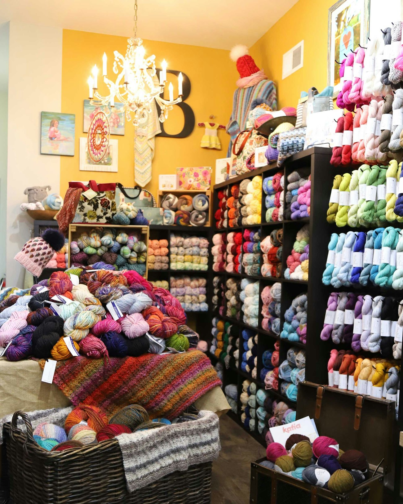 JM: We try to encourage customers to have at least two projects going at a time, one smaller one and one larger. Though—who’s counting! Having said that, our most popular “on-the-go” projects include socks, hats, and cowls. We have lots of shawl, blanket, and sweater knitters as well.