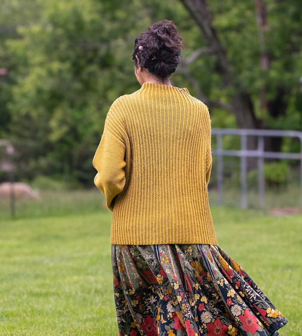 The surface of my stockinette swatch was velvety, and my twisted rib swatch was delightfully squishy. Although I sampled this yarn with a variety of knitting needle sizes, I couldn’t pick a favorite—it works nicely at a range of gauges. Watershed is a woolen-spun yarn, meaning there’s lots of air in the yarn, making it lightweight but warm. While some woolen-spun yarns tend to break if you pull too tightly as you knit, Watershed was nice and strong while still having a pleasant hand.
