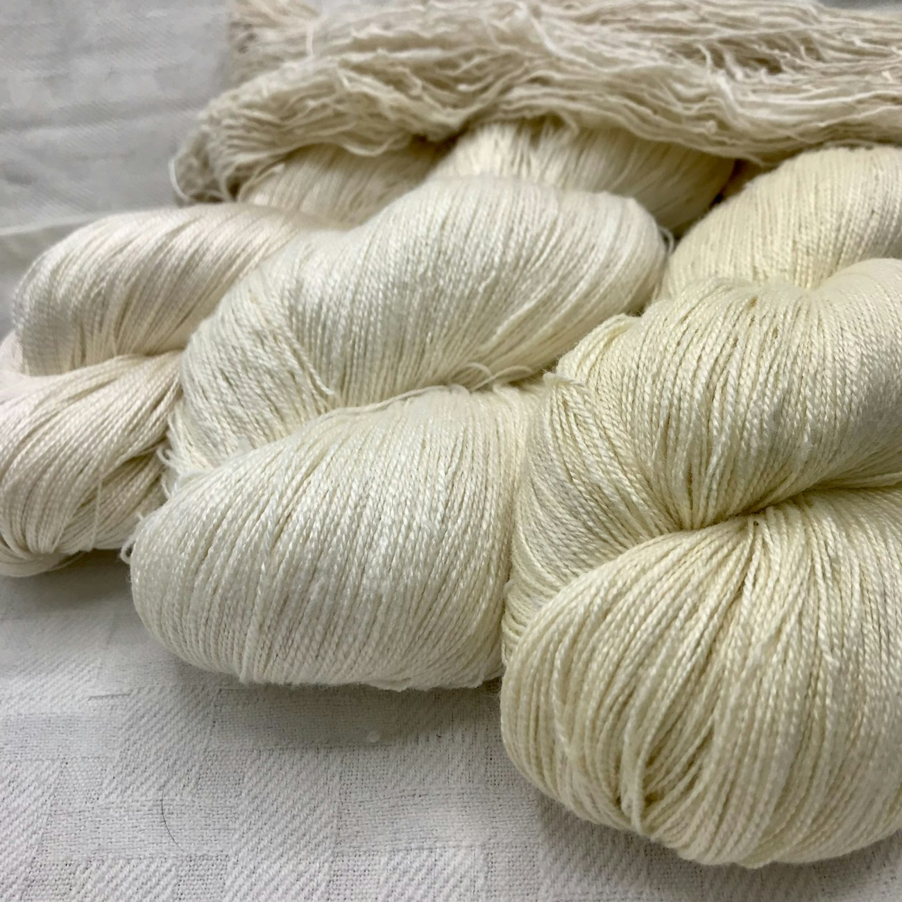 SDB: Our millspun wild silks are all laceweight or even a bit finer grist. Each is perfectly suited for anything lace—scarves, shawls, shawlettes, or even a lacy top.